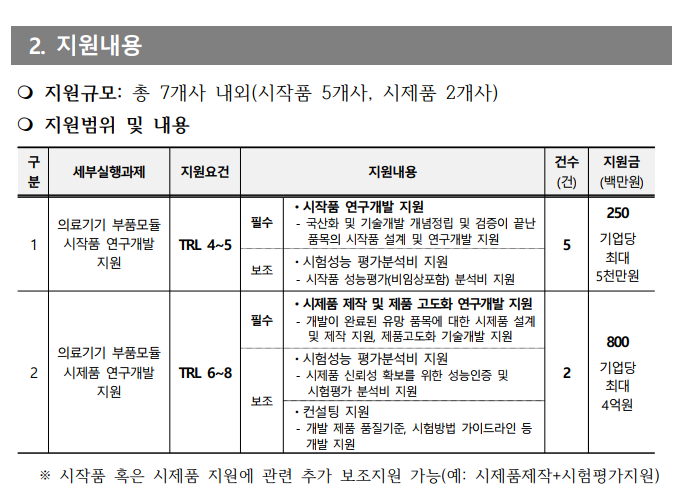 ☞ 의료기기 부품 모듈 국산화 및 기술개발 관련 시작품 및 시제품 연구개발 지원