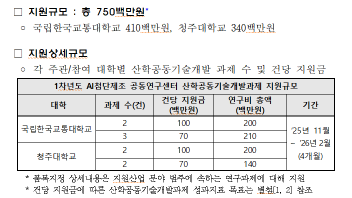 ◦ 대 학 : 충북 AI첨단제조 공동연구센터 주관대학 및 참여대학