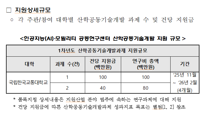 ☞ AIㆍ모빌리티 기반 R&BD 과제를 통해 기술개발과 지역 전략산업의 애로기술 해결을 위한 대학ㆍ기업 연계 인공지능(AI)ㆍ모빌리티 분야 연구개발 과제 지원