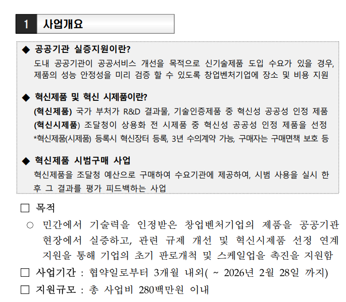 ☞ 공공실증 + 규제 해소 + 혁신시제품 시범구매 및 민간투자로 연결 될 수 있도록 행정력 및 기업 당 최대 75백만원 매칭 지원
