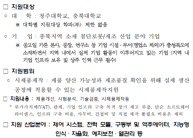 ※ 공고일 기준 본사, 공장, 연구소 등 기업 시설ㆍ부서(영업소 제외)가 충청북도에 소재하면서 지역 내에서 실제 기업 활동이 이루어지고 있는 기업(지역 내 기업 인프라 보유 및 상주 인력 근무 필수)