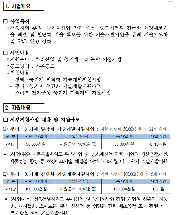 - 뿌리ㆍ농기계 첨단화 기술개발지원사업(지원 사업비 100,000천원) 지원