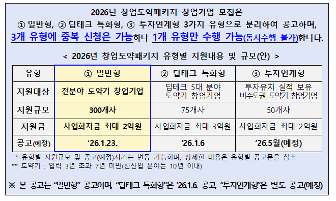 2026년도 창업도약패키지(일반형) 창업기업 모집공고