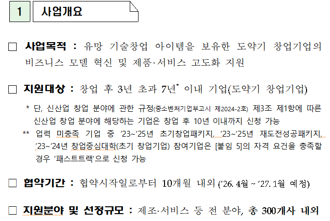 창업기업의 성장과 도약을 지원하는 『2026년도 창업도약패키지(일반형)』에 참여할 창업기업을 다음과 같이 모집합니다.