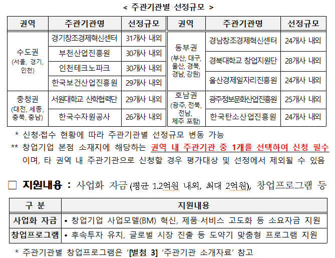 사업화 자금 및 주관기관 제공 창업 프로그램