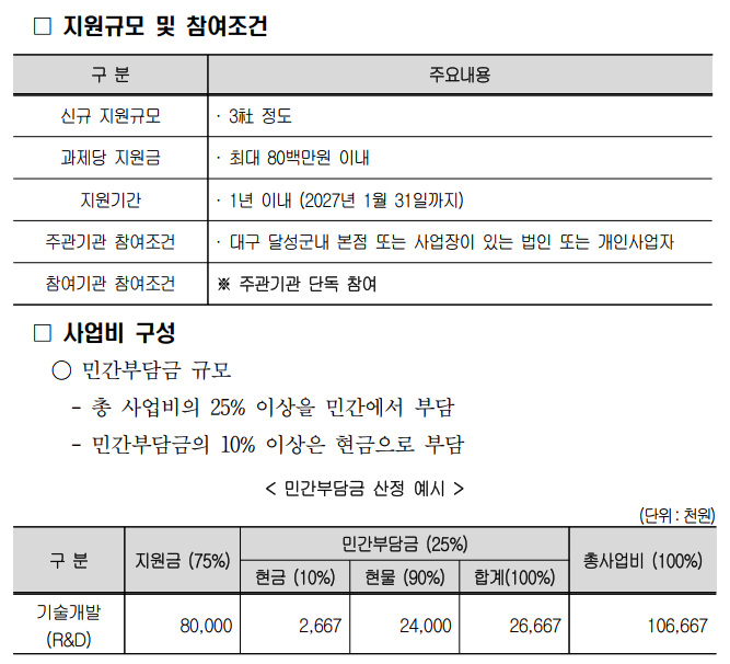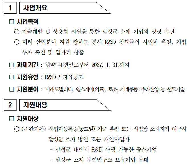- 달성군 내에서 R&D 수행 가능한 중소기업