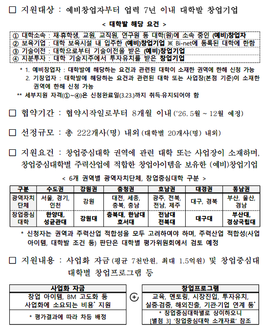 2026년도 창업중심대학 대학발 (예비)창업기업 모집 공고